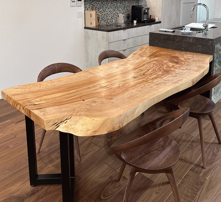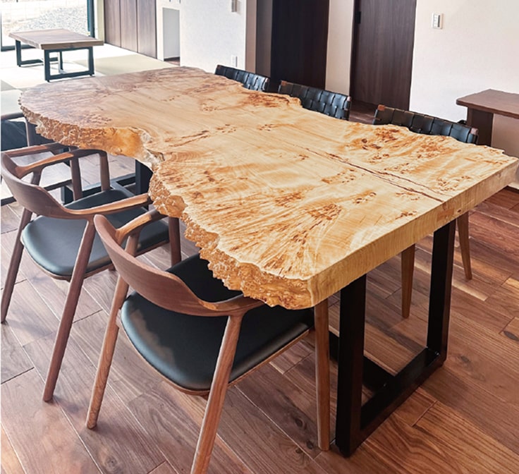 村上一枚板の家具は、見た目の美しさだけでなく、そこにあることで空間や心に自然と溶け込んでいくような魅力があります。