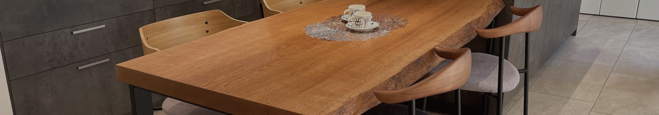 豊富な樹種から、内装材の色・質感・素材と最も相性のいい木材を使って、ダイニングテーブルをオーダーメイドできます。