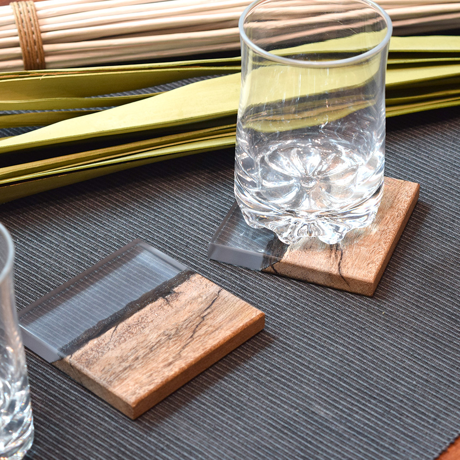 レジンコースター 無色クリア×サペリ レジン商品 雑貨 コースター コースター